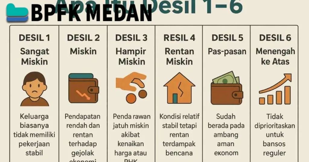 6. **Desil 6 hingga 10**: Menengah ke atas (tidak diprioritaskan untuk bantuan sosial)