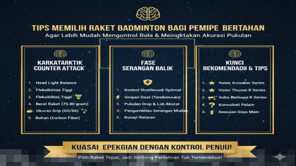 <p>Memilih raket badminton yang tepat sangat penting bagi pemain bertipe bertahan yang mengandalkan kontrol, ketahanan stamina, serta akurasi pengembalian shuttlecock. Karakter permainan defensif membutuhkan raket dengan spesifikasi khusus agar mampu meredam serangan lawan sekaligus menjaga stabilitas pukulan. Dengan memahami tips memilih raket badminton bagi pemain bertipe bertahan, Anda bisa meningkatkan performa permainan secara signifikan tanpa harus mengubah gaya bermain alami Anda.</p>